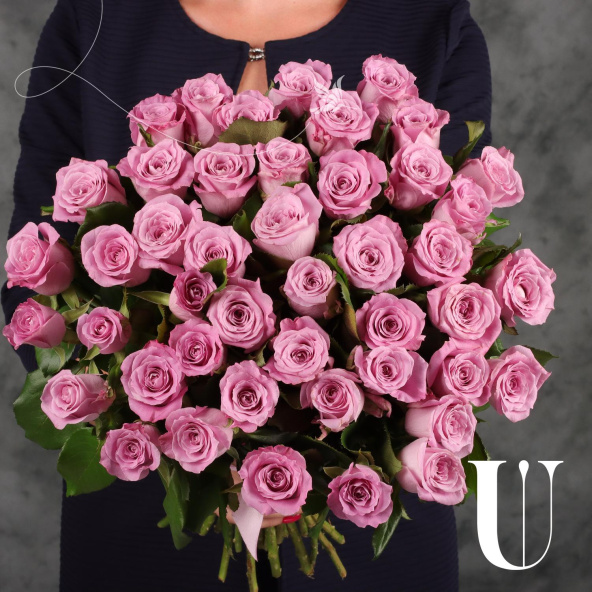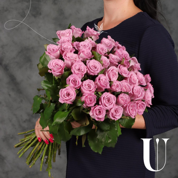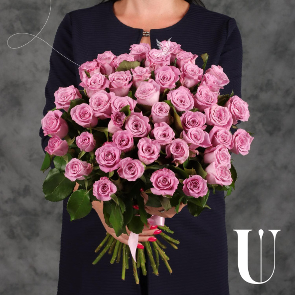 Монобукет из 41 бело-розовой розы сорта Джумилия 60 см