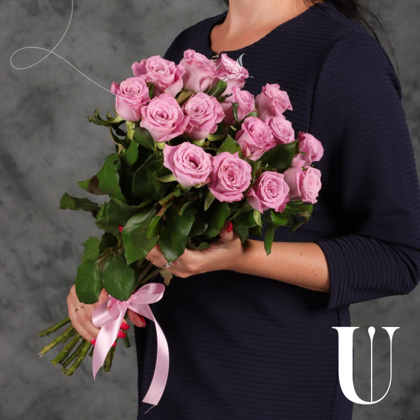 Букет из кенийских роз микс 21 штука в упаковке с лентой