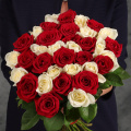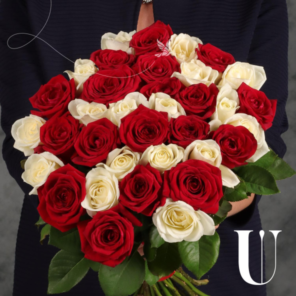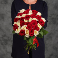 Монобукет из 15 вывернутых роз сорта Нина в матовой упаковке