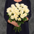 Монобукет из 51 белой розы в дизайнерской упаковке