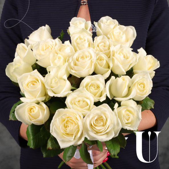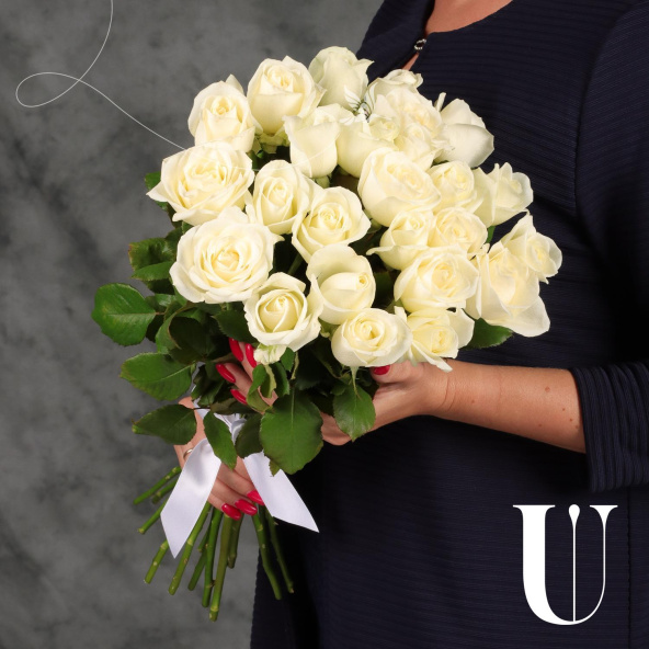 Монобукет из 19 белых роз сорта Аваланж