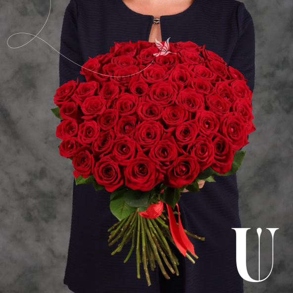 Исключительный монобукет из 51 розы сорта Аква