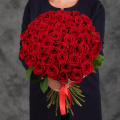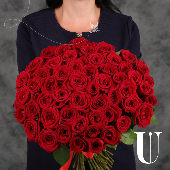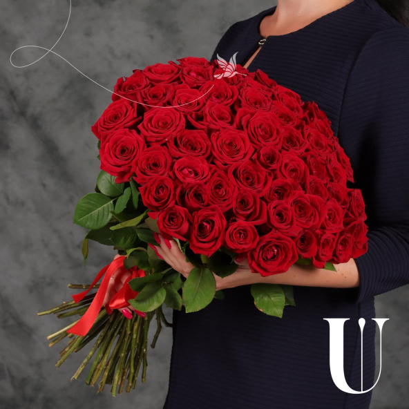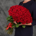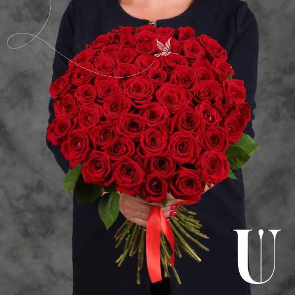 Монобукет из 51 розы Ред Наоми в розовой упаковке