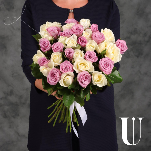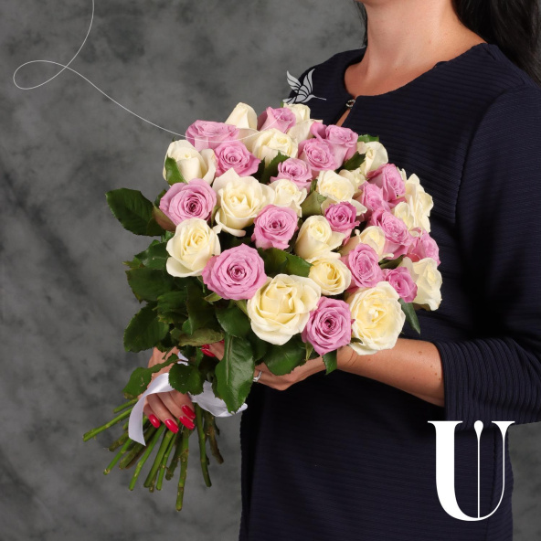 Монобукет из 21 белой розы 60 см. это универсальный подарок, который подойдет для самых важных моментов