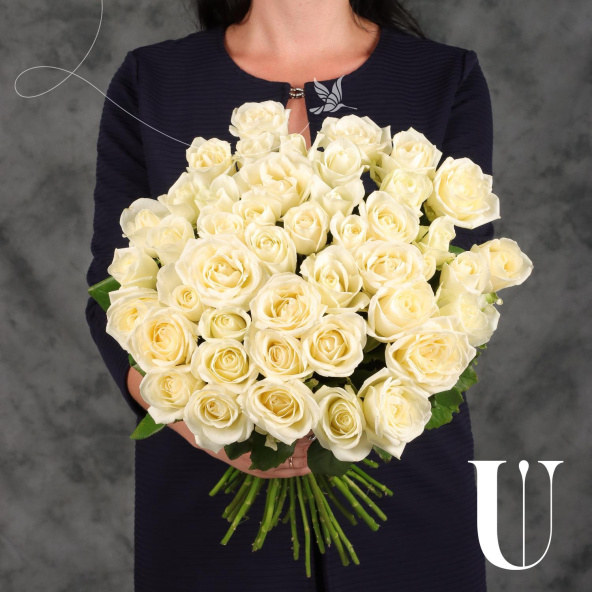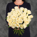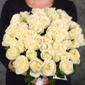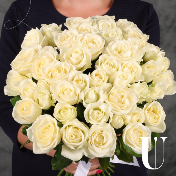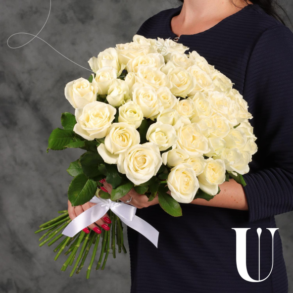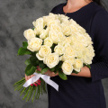 Монобукет из 51 белой розы Аваланж в стильной упаковке