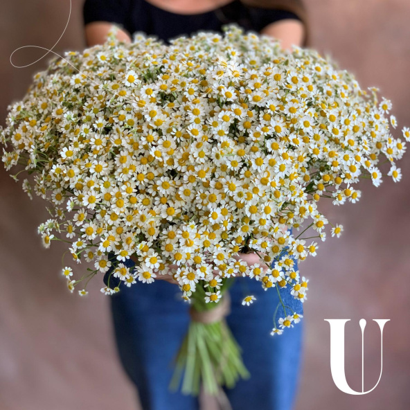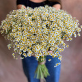 Огромный букет из кустовых хризантем в дизайнерской упаковке