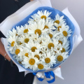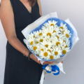 Букет из белых кустовых хризантем в дизайнерской упаковке