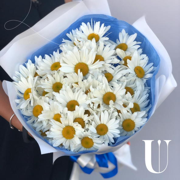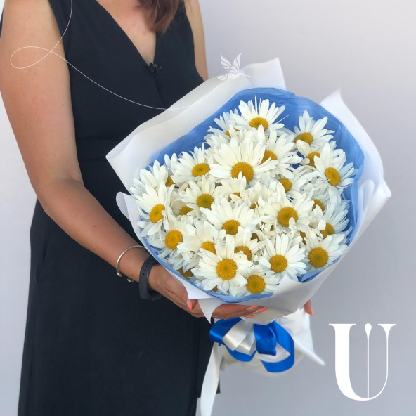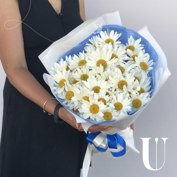 Монобукет из белых сантини Маве6рик в дизайнерской упаковке