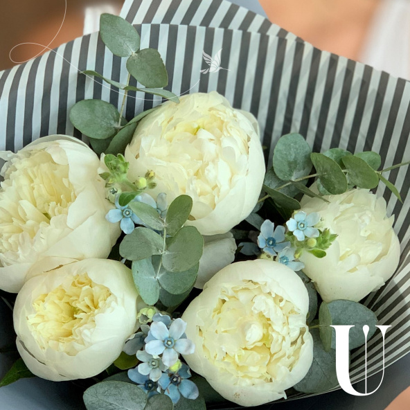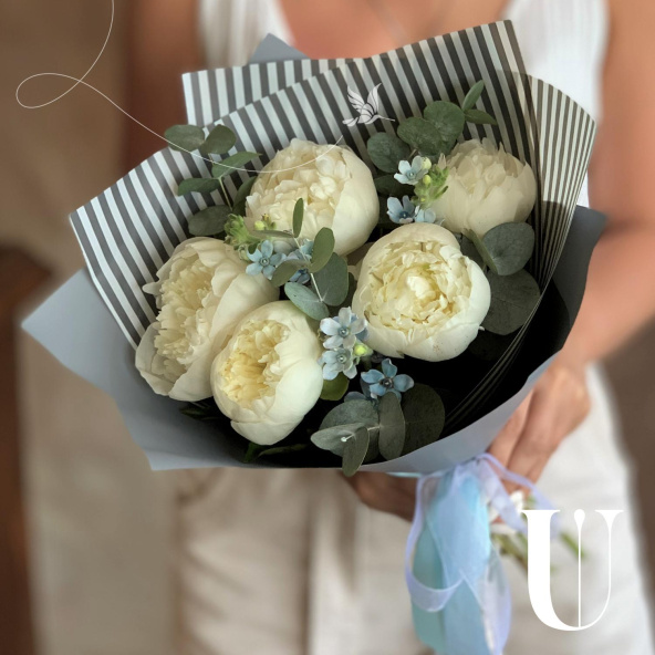Букет из 15 белых тюльпанов в дизайнерской упаковке