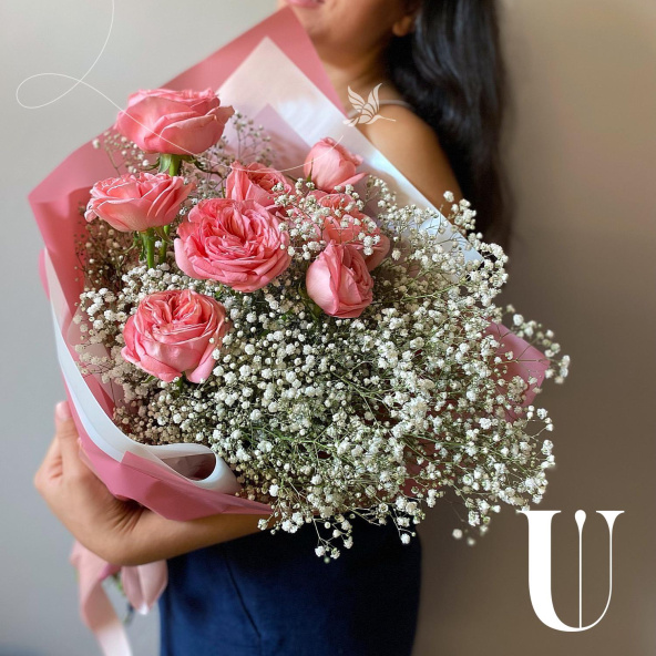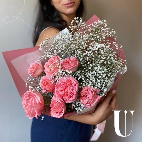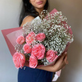 - Роза кустовая пионовидная садовая, цикламен, 40 см. - 9 шт