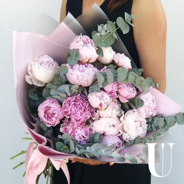 Ароматный, летний букет из пионов с эвкалиптом - это отличный повод порадовать любимых