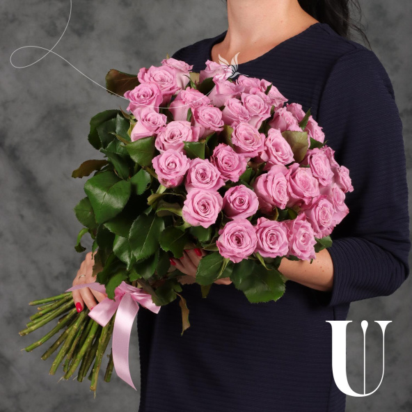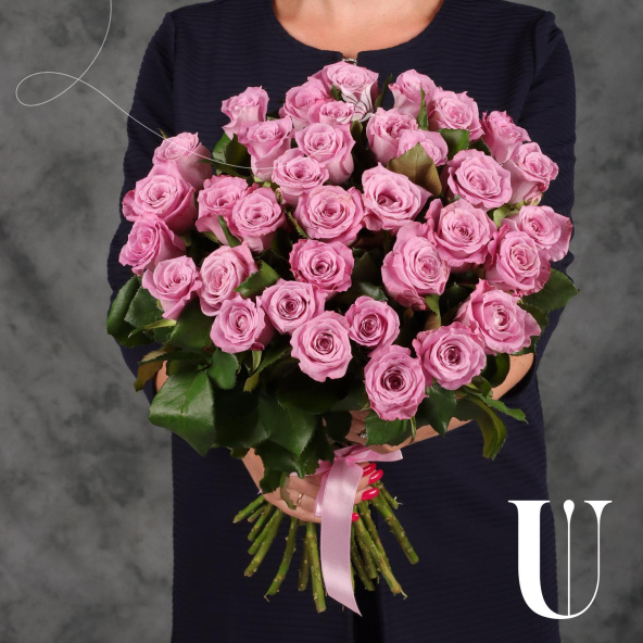 Монобукет из 35 розовых роз сорта Аква