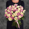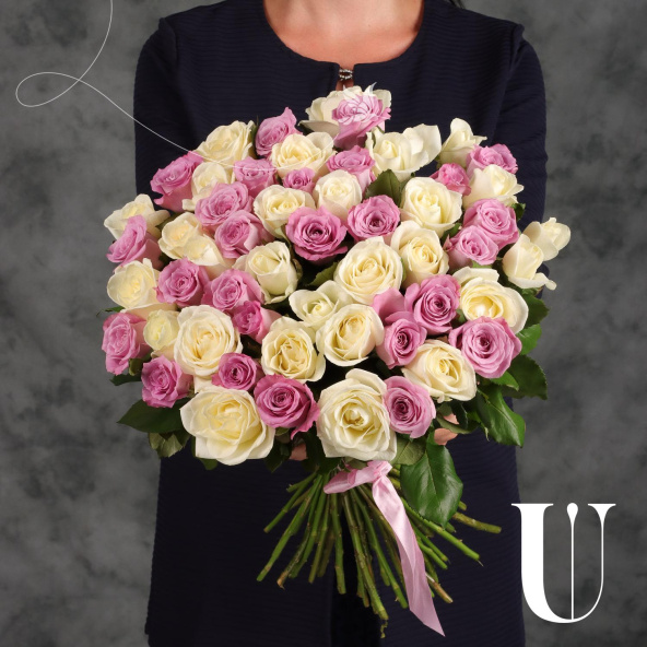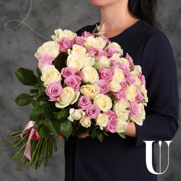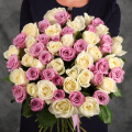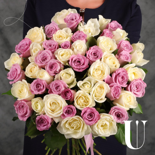 Монобукет из 51 кремовой розы 60 см в упаковке