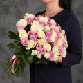Монобукет из 25 роз Эксплорер, Пинк Флойд, Мондиаль и других сортов