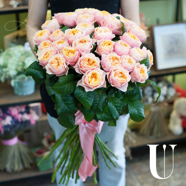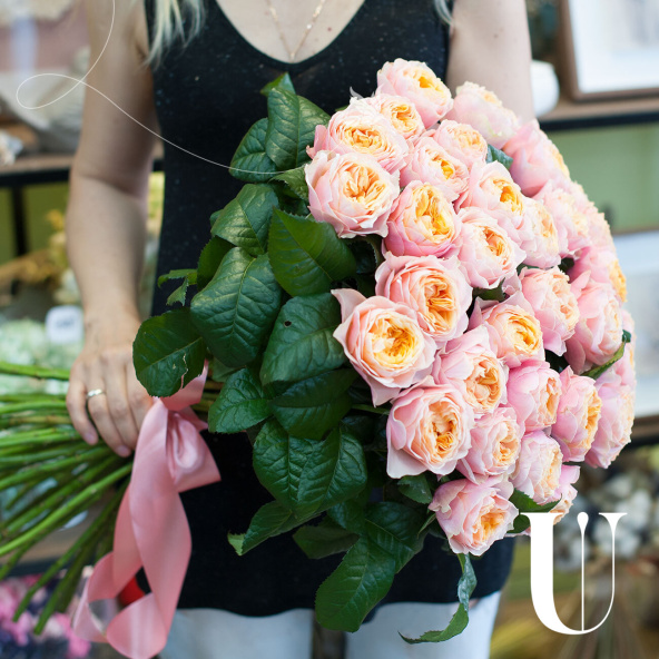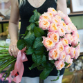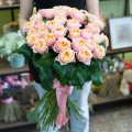Большой букет из 51 розы сорта Мондиаль в крафтовой упаковке