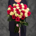 Букет из 31 белой и розовой Эквадорской розы, 70 см