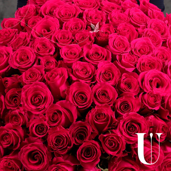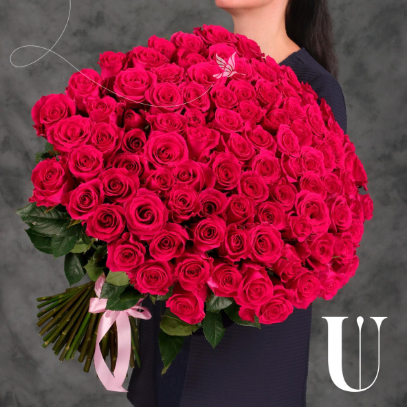 Огромный букет из роз сортов Мондиаль и Пинк Флойд