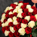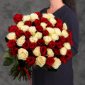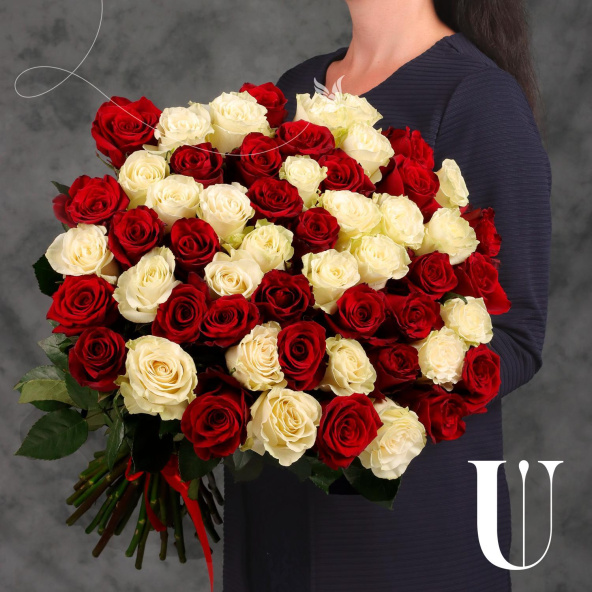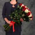 Букет из 55 красных и белых Эквадорских роз, 70 см