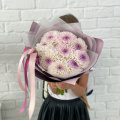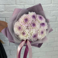 Монобукет из белых хризантем в крафтовой упаковке