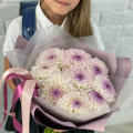 Монобукет из ромашки сорта Камилла в розовой упаковке