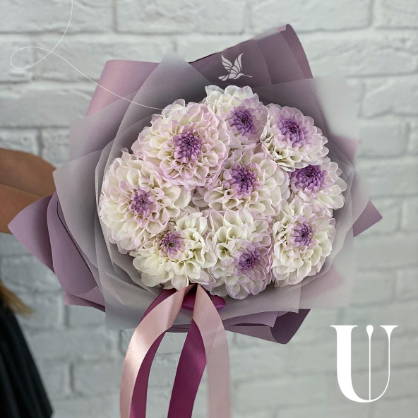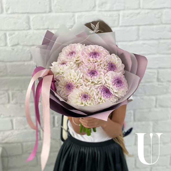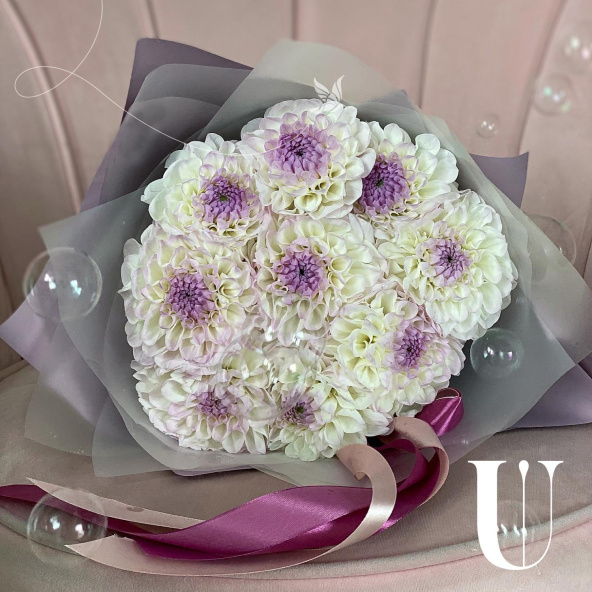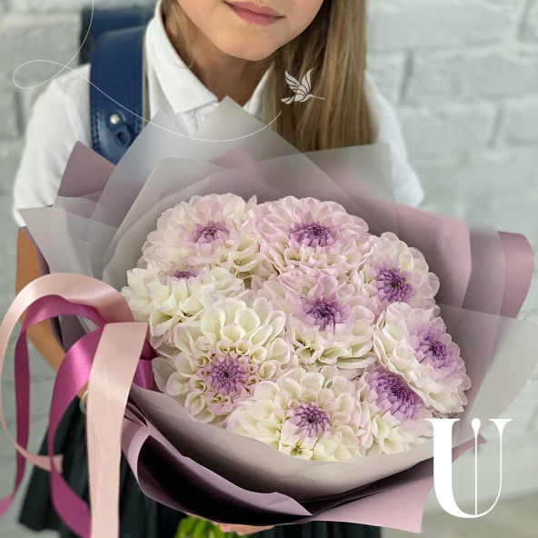 Георгина, бело-розовая - 9 шт