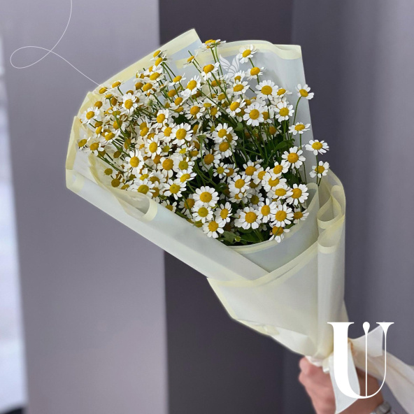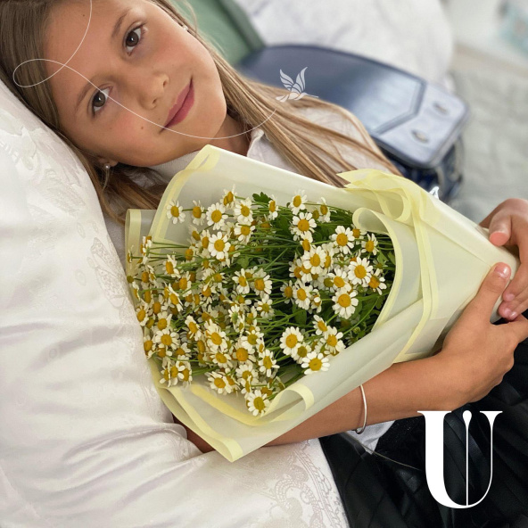 Стильный моно букет из 11 белых кустовых роз в дизайнерской упаковке
