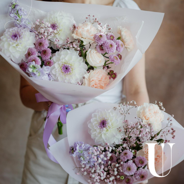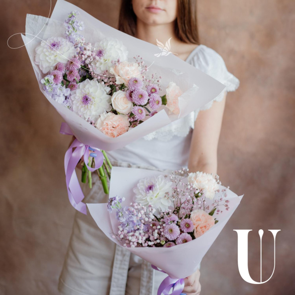 - Георгина Эвелин, бело-сиреневая - 4 шт