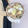 Букет из кремовых кустовых роз в дизайнерской упаковке