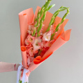 Монобукет из кремовых и розовых диантусолв в упаковке