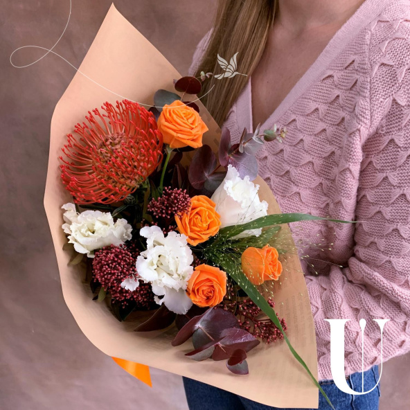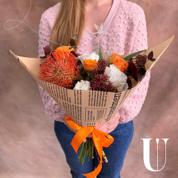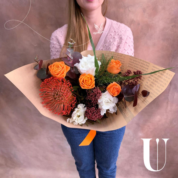 - Роза кустовая, оранжевая, 40 см. - 2 шт