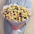 Букет из 15 пионовидных роз Шиммер в дизайнерской упаковке