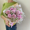 Монобукет из 7 розовых гортензий в дизайнерской упаковке