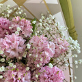 Монобукет из розовых и белых гортензий в упаковке