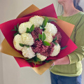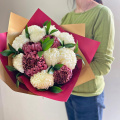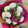 Букет из белых кустовых хризантем в дизайнерской упаковке