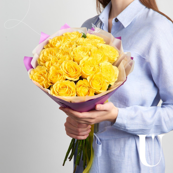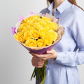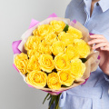 Монобукет из 25 роз сорта Аваланж в уматовой пленке