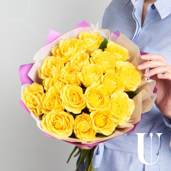 Кремовый монобукет из 19 роз сорта Талея в дизайнерской упаковке