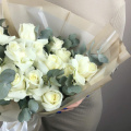 Утонченное сочетание розы и эвкалипта несомненно подарит получателю хорошее настроение