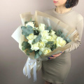 Букет из кремовых кустовых роз в дизайнерской упаковке