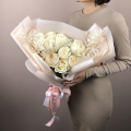 Букет из белых роз сорта Аваланж 40 см в матовой сиреневой пленке