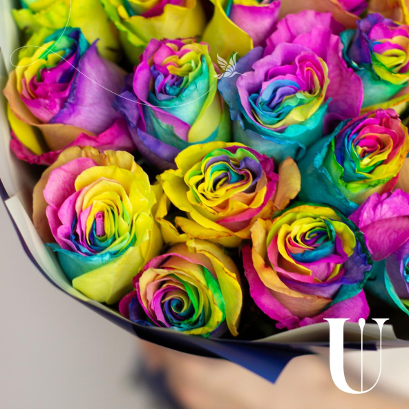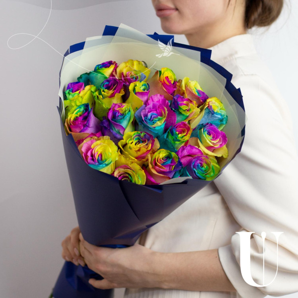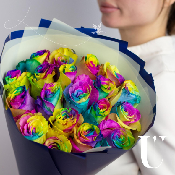 - Роза, Эквадор, радужная, 70 см. - 19 шт