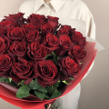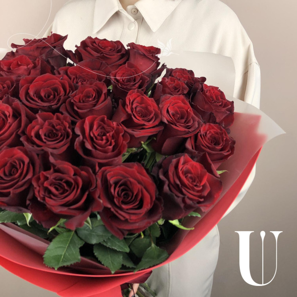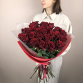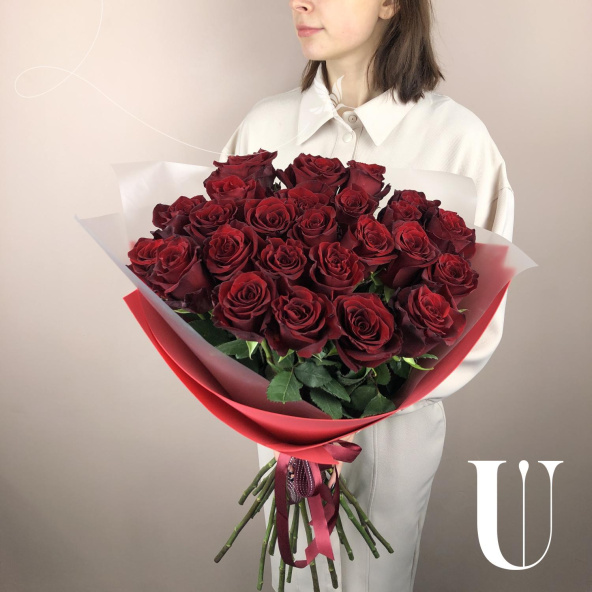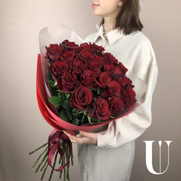 Монобукет из 25 роз Ред Наоми 60 см в упаковке