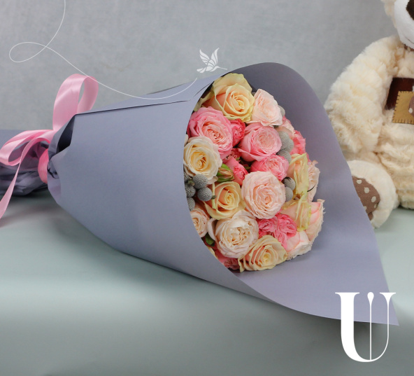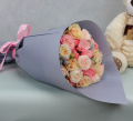 Монобукет из кустовых роз микс в розовой упаковке