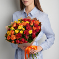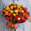 Монобукет из 19 оранжевых роз в упаковке