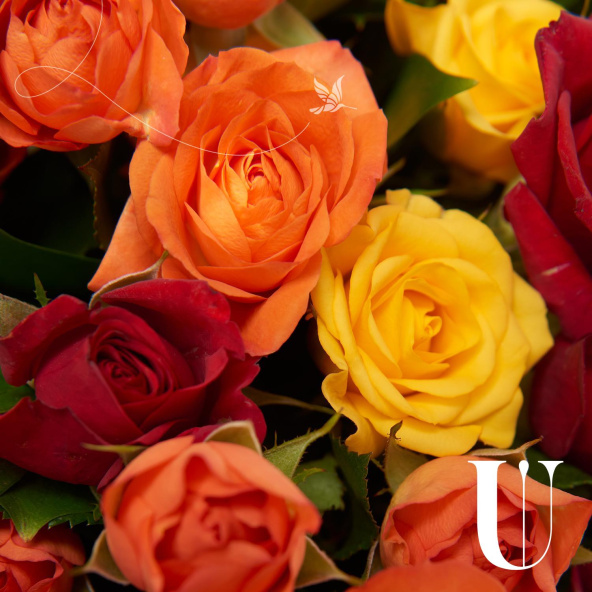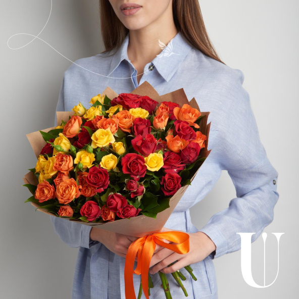 Роза кустовая рыжая, желтая, красная - 11 шт