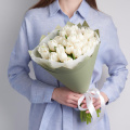 Монобукет из 11 белых роз сорта Аваланж в упаковке