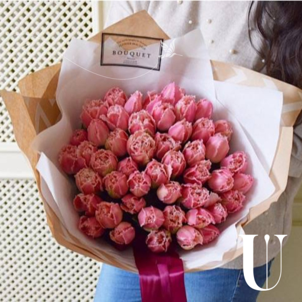 Мохнатые розовые тюльпаны 49 штук!