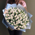 Монобукет из 49 нежно-розовых тюльпана в розовой упаковке