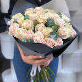 Монобукет из 11 роз Вайт Охара в розовой упаковке
