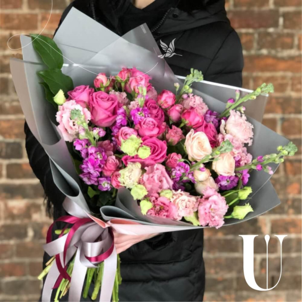 - Роза кустовая, розовая, 50 см. - 5 шт