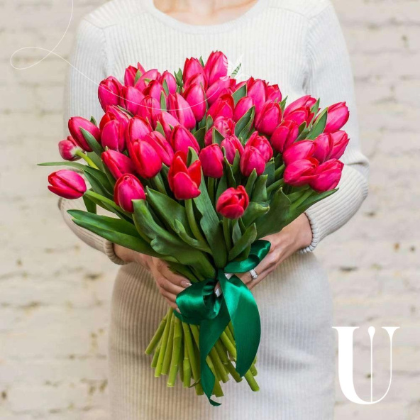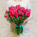 Монобукет из 49 розовых тюльпанов в упаковке